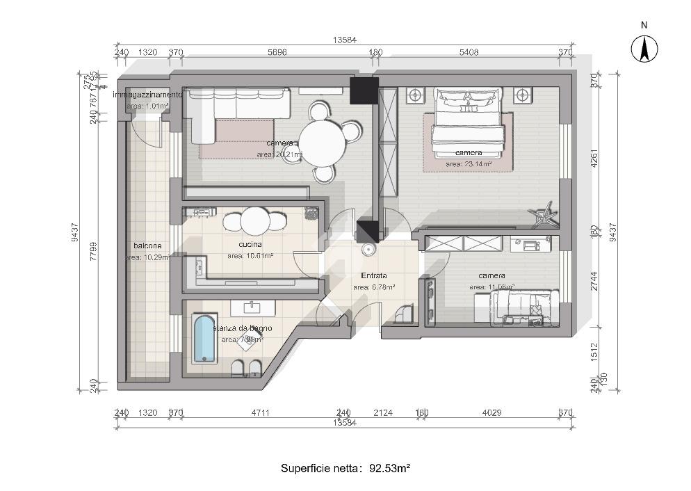 La zona notte è composta da due camere da letto, tutte ampie e ben squadrate, che consentono una facile disposizione dell’arredo.