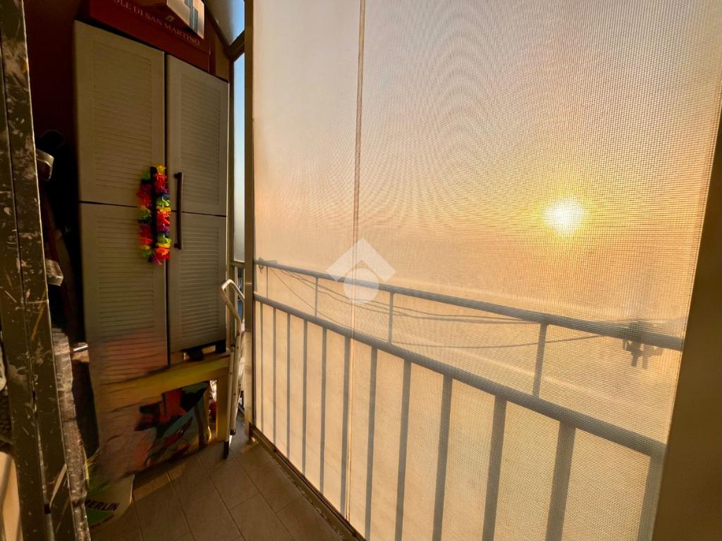 L'ingresso è living sulla spaziosa e luminosa zona giorno con angolo cottura ed è dotato di balcone con tende verande estive/invernali ed ha l'affaccio sull'interno cortile.