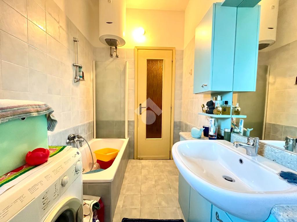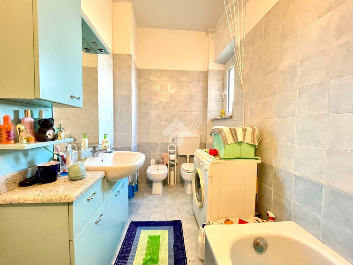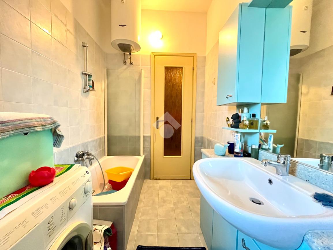 Il servizio è finestrato ed è presente la vasca e l'attacco della lavatrice.