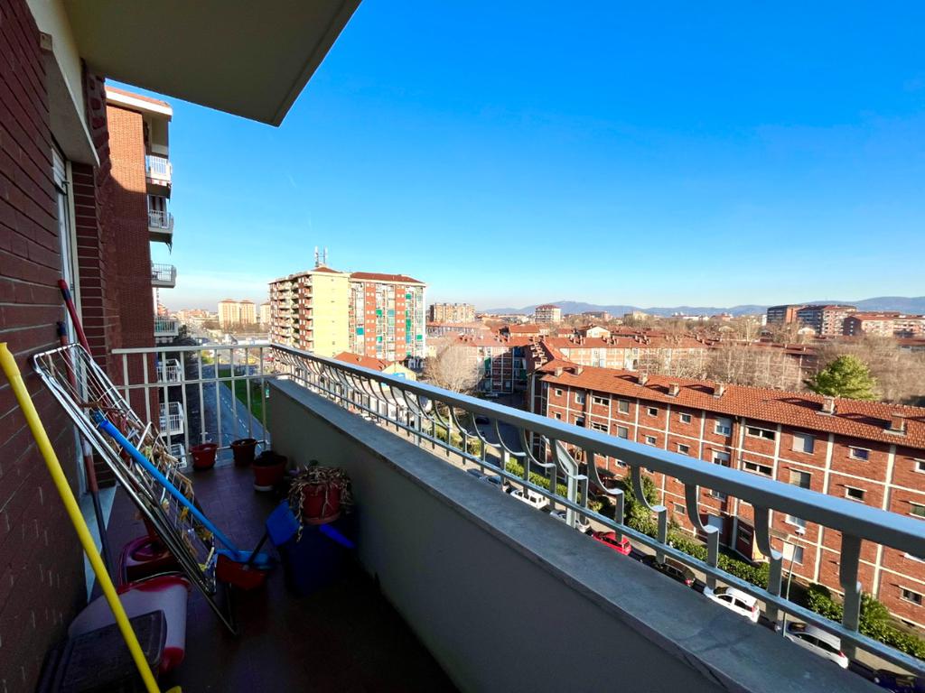 La luminosa zona giorno è composta dal tinello con cucinino ed ha l'affaccio sul balcone in comune con la camera da letto, e gode di una vista in parte sulle Alpi ed in parte sulla collina e Superga.
