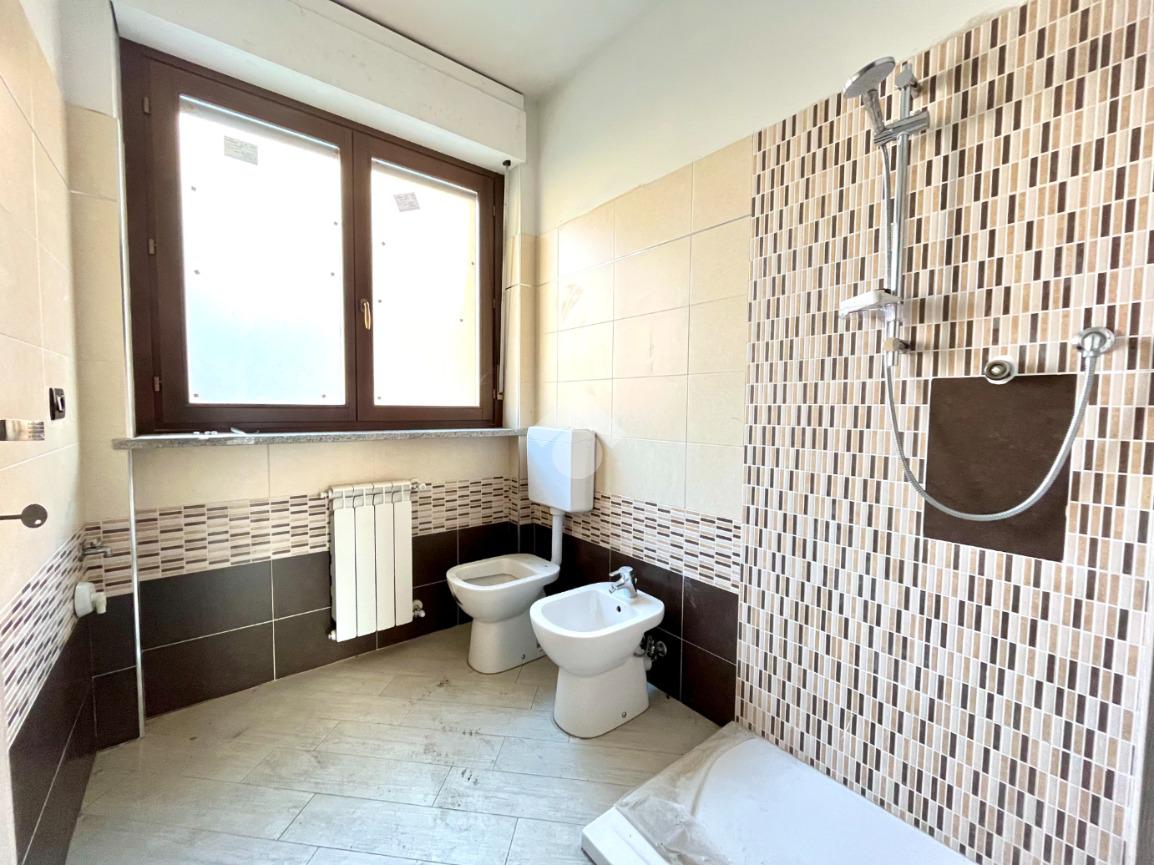 Attraverso l'anti-bagno si accede al servizio che è dotato di doccia ed è finestrato.